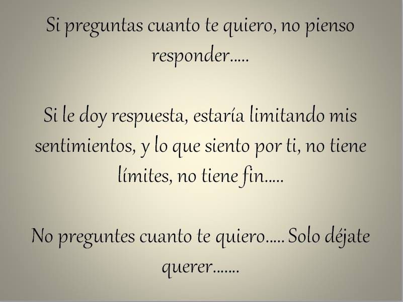 - «Cada día te amo más, mi amor por ti crece sin límites.»